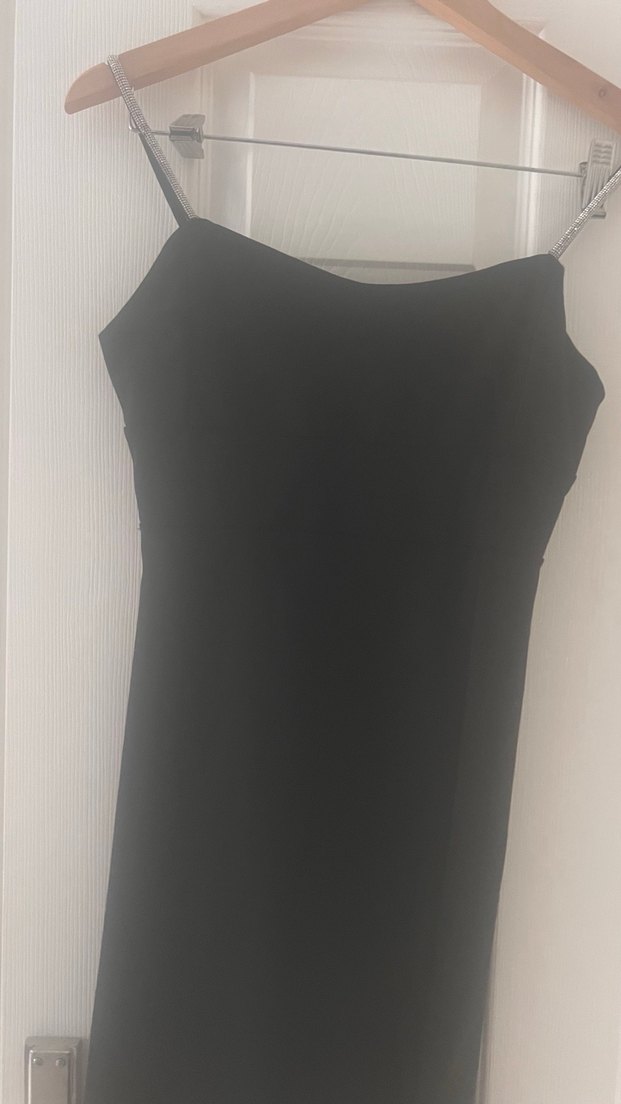 Siyah V Yaka Drapeli kısa Abiye Elbise Etiketli yeni