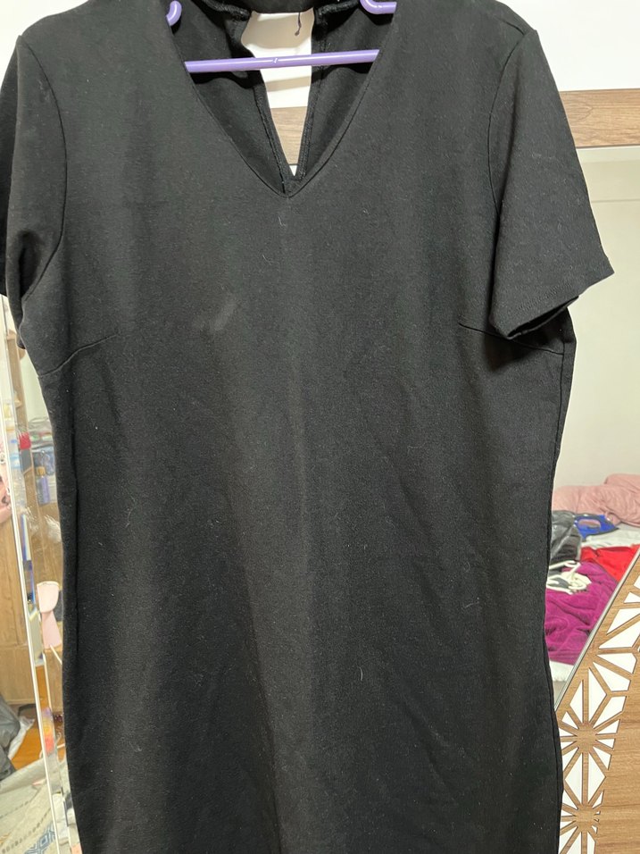 Siyah renkte, V yaka ve kısa kolluMidi uzunlukta ve vücuda oturan kesimiyle rahat ve şık bir görünüm sunar. Günlük kullanım için uygundur.