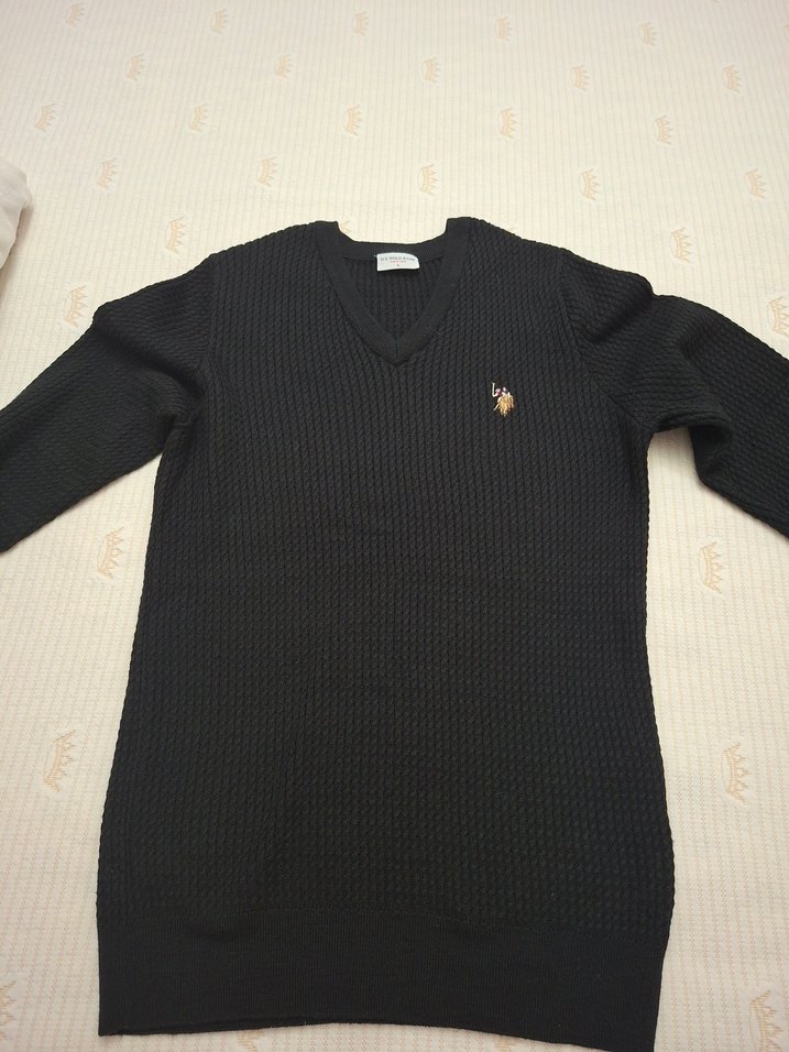 Siyah V Yaka Erkek Triko Kazak Lbeden Örgü Desen 2 kez giyinildi