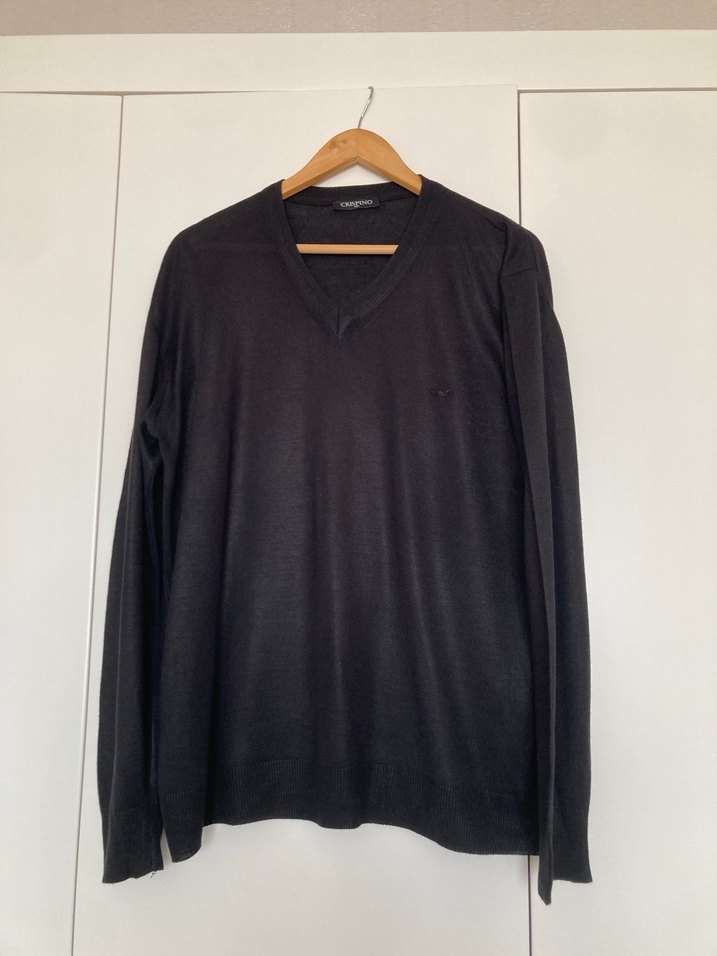 Siyah V Yaka Erkek Yün Kazak