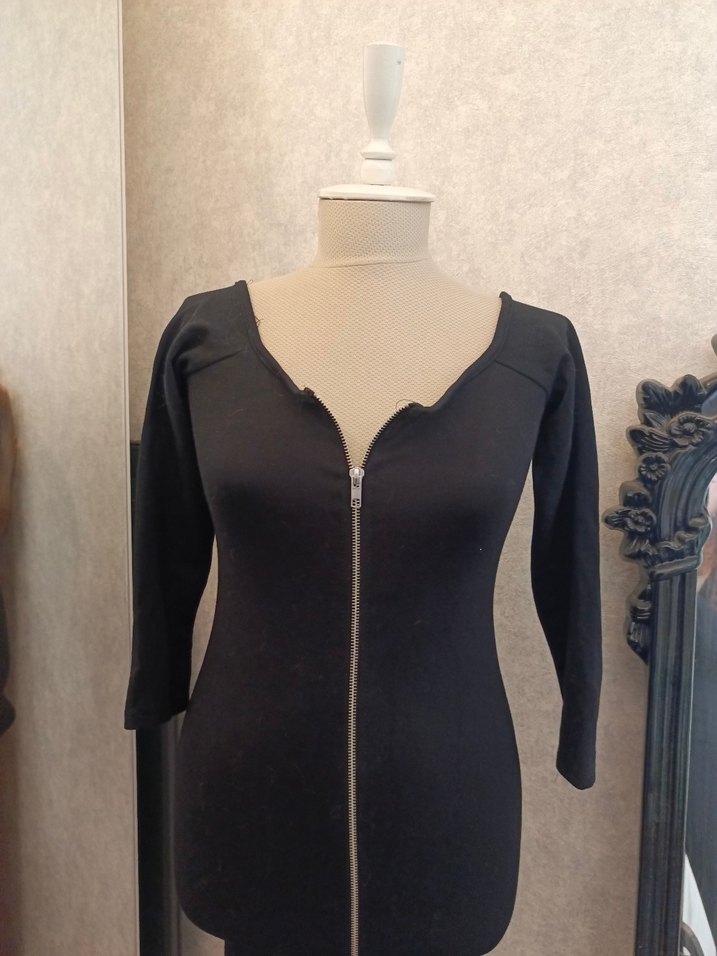 V yaka ve ön fermuarlı, sentetik kumaştan yapılmış dar kesim Uzun kollu
