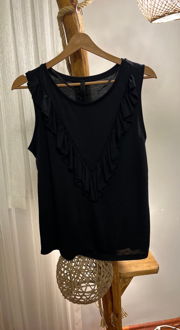 Siyah V Yaka Fırfırlı Kolsuz Bluz