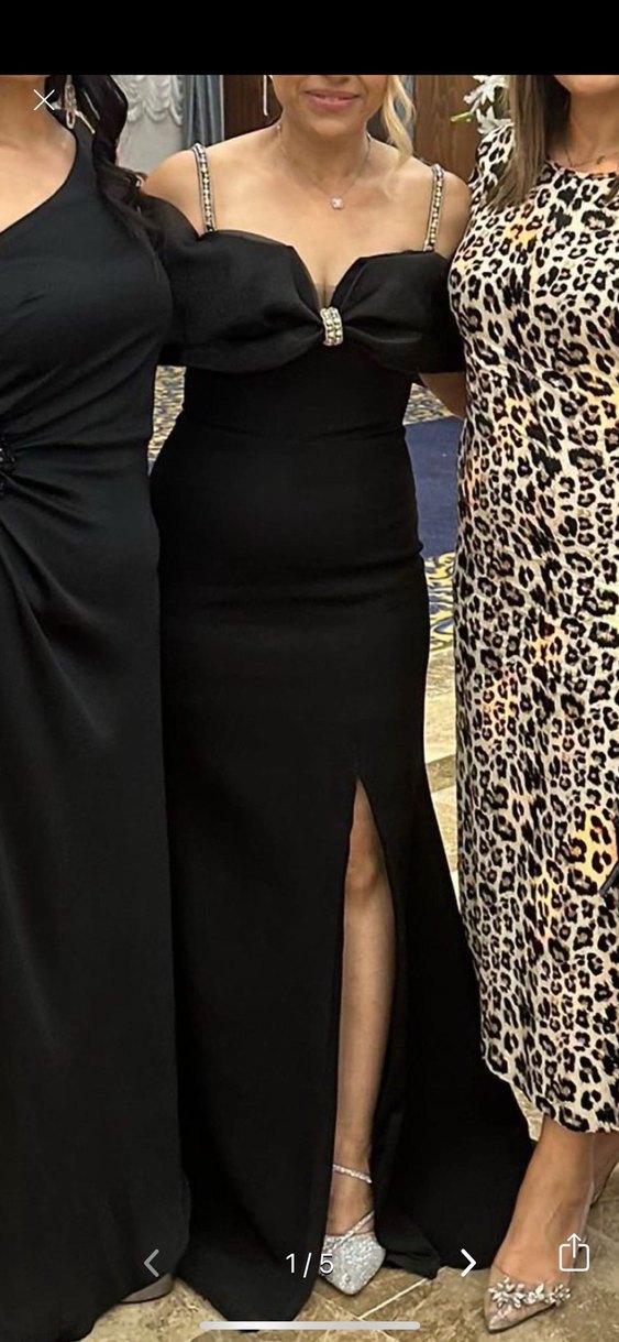 Siyah V Yaka Fiyonk Detay Uzun Abiye Elbise