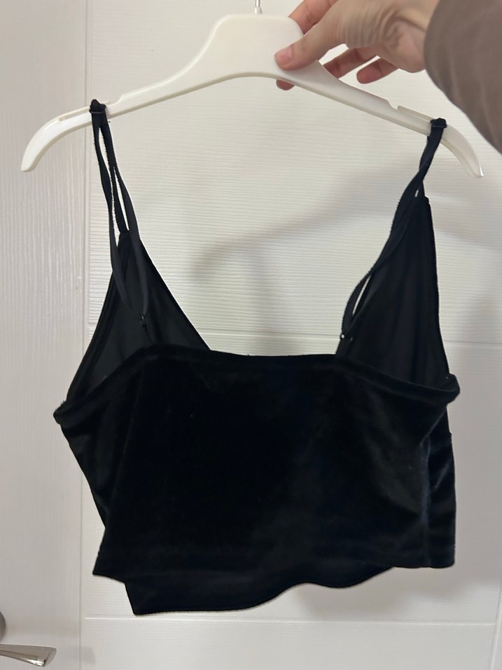 Siyah V Yaka İnce Askılı Bustiyer kadife dokulı