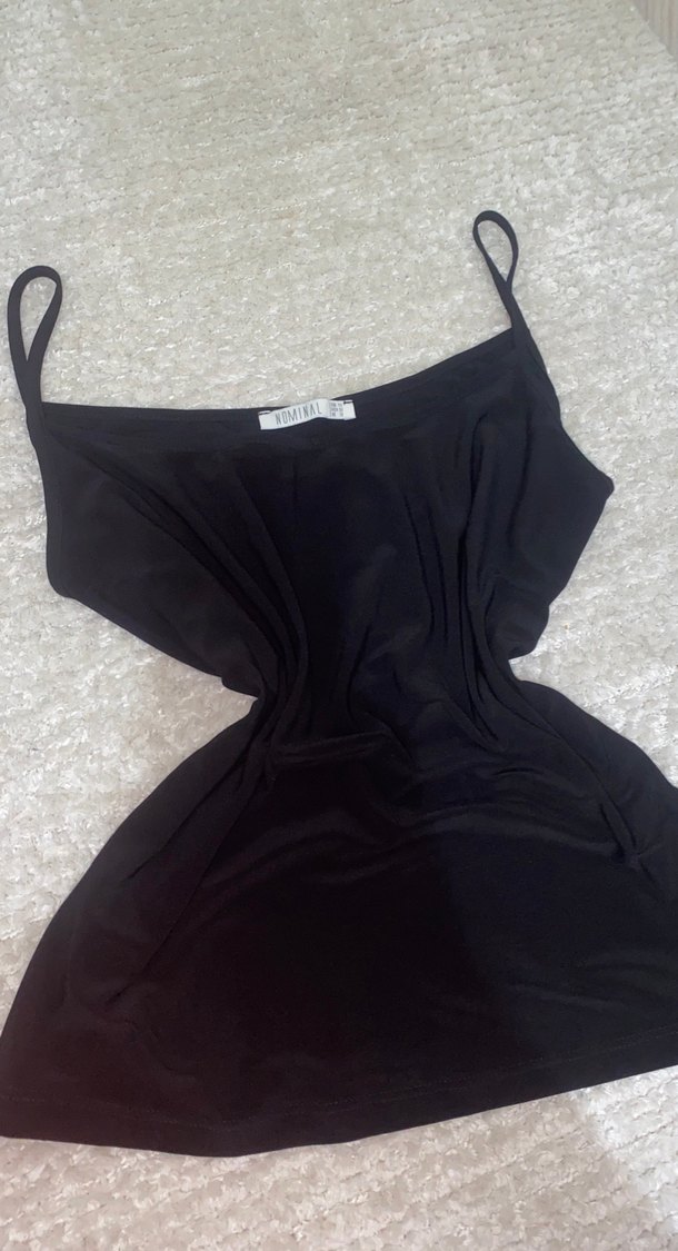 Siyah, ince askılı ve V yaka kadın atlet, vücuda oturan kesimi ve ipeksi dokusuyla günlük kullanım için sade ve şık bir goth tarzı sunar.
