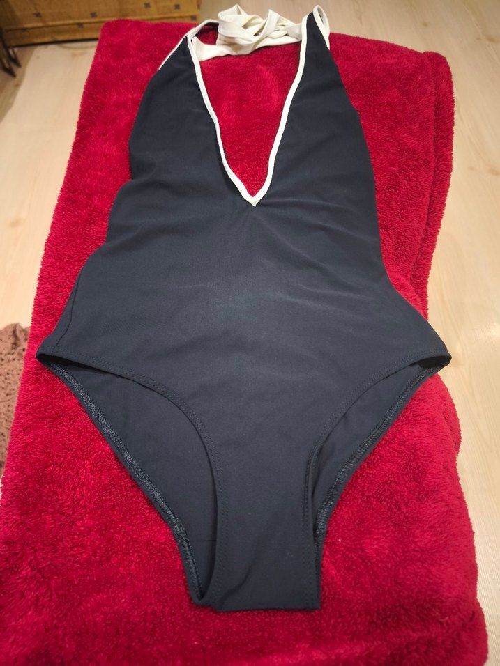 Siyah, ince askılı ve derin V yaka kesime sahip, vücuda oturan bu mayo, plajda şık ve rahat bir görünüm sunar. Desensiz tasarımıyla streetwear tarzını yansıtır. ️