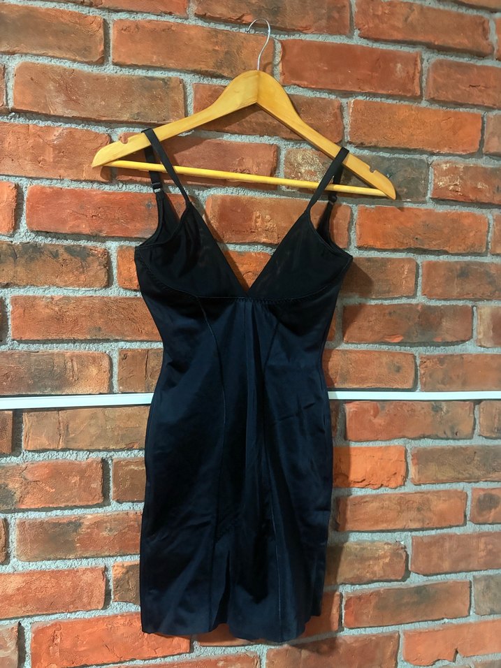 V yaka, ince askılı, drapeli siyah midi elbise, gotik tarzıyla romantik geceler için uygun.