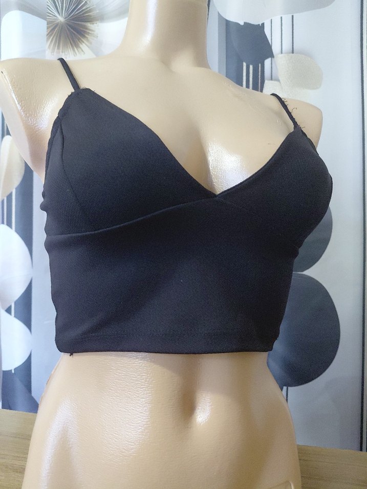 Siyah V Yaka İnce Askılı Mini Bustiyer