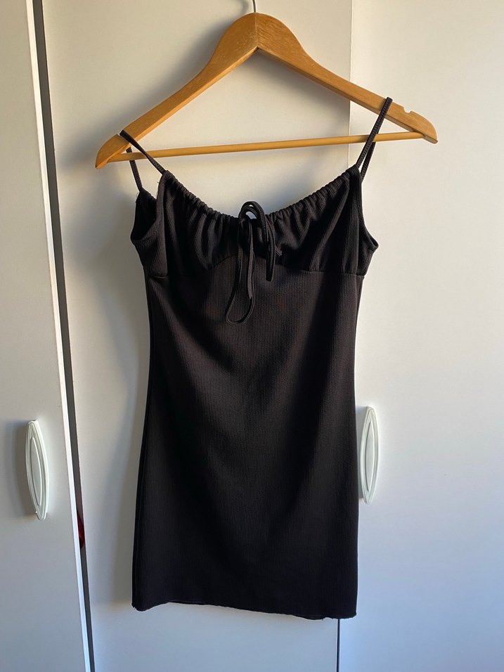 Siyah V Yaka İnce Askılı Mini Elbise