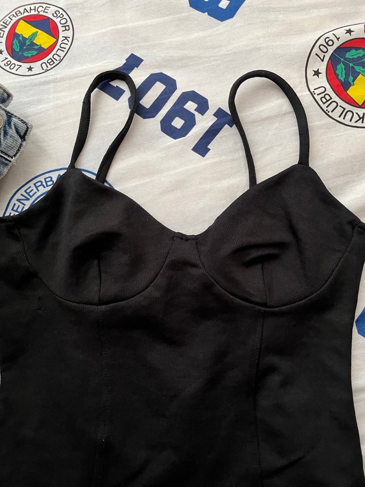 Siyah V Yaka İnce Askılı mini elbise