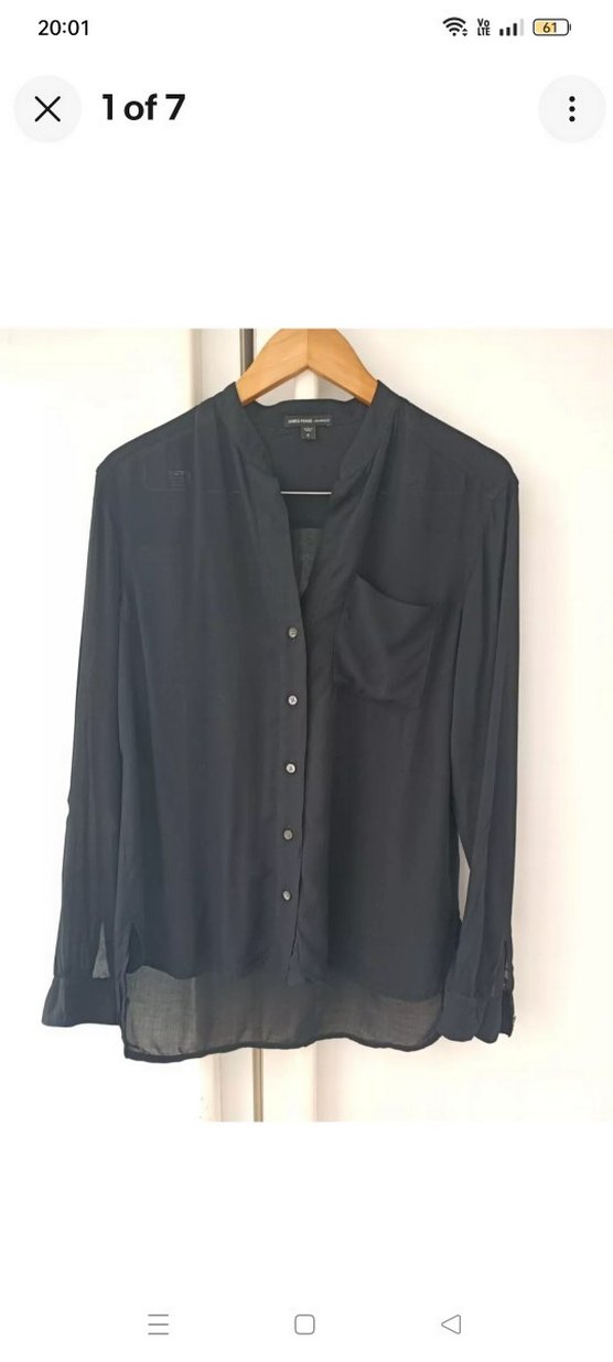 Siyah, uzun kollu, V yaka, düğmeli ve göğüs cepli kadın gömleği. ince kumaştır. markayı bilen bilir, oldukça kaliteli. hiç bir sorunu yoktur. 0 beden Xs a denk. her dolapta bulunması gereken kaliteli bir basic bir parça