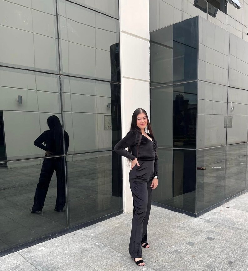 Siyah, parlak kumaştan yapılmış, V yakalı, uzun kollu tulum . Düzenli kesimi ve desensiz tasarımıyla rahat ve şık bir görünüm sunar.
