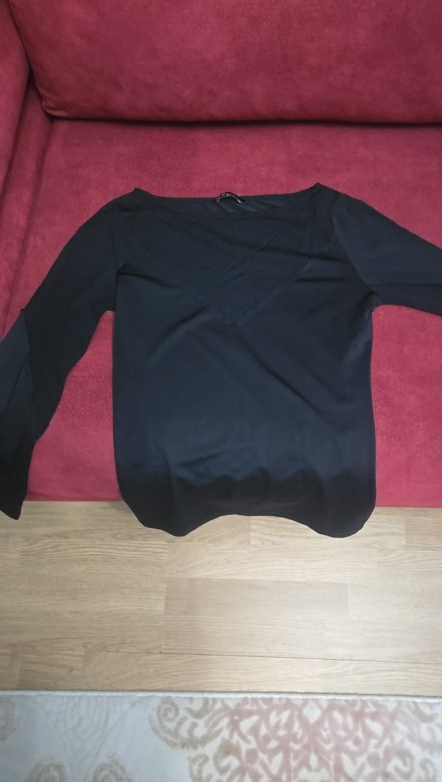 Bu siyah bluz, uzun kollu ve V yakalıdır. Rahat, normal boyda, ipeksi kumaştan yapılmıştır. Günlük kullanıma uygun, minimalist ve zahmetsiz şıklık sunar.