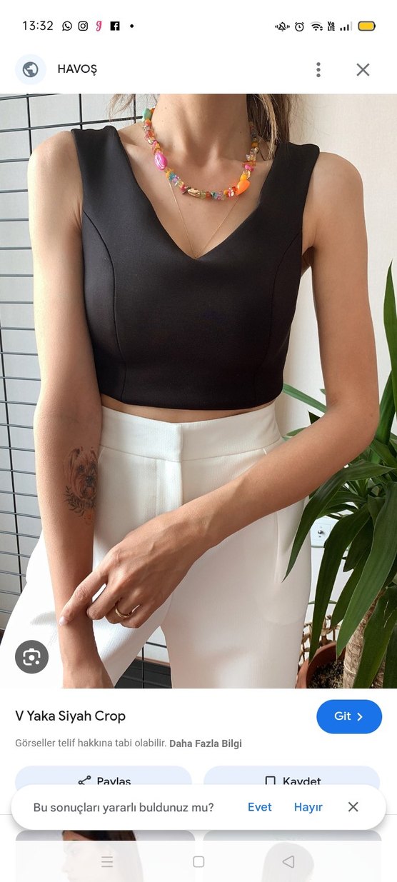 Siyah, V yaka, kolsuz ve fitted kesime sahip crop top. İpek gibi kumaşıyla günlük kullanıma uygun, minimal ve şık tasarım. 42 yazıyor ama 40 bedene daha uygundur