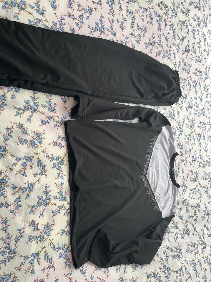 Kadınlar için bol kesim, V yaka ve uzun kollu eşofman takımı. Sentetik kumaştan, fermuarlı detaylı, siyah ve gri tonlarında, günlük kullanım için uygun. Beden dar kalıp xl olmasına rağmen