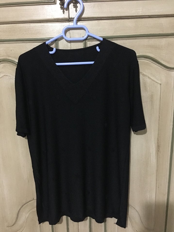 Siyah V yaka, kısa kollu kadın tiriko bluz ve ipeksi dokusuyla dikkat çeker. Minimalist tasarım ofis için uygundur.boy 65 cm iki koltuk arası 48 cm iade yoktur