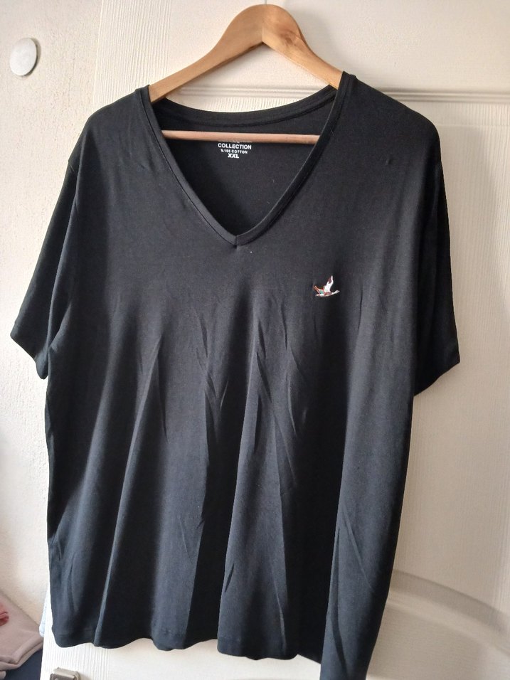 Kadın tişörtü, V yaka ve kısa kollu, bol kesimdir. İpeksi kumaştan yapılmış, koyu siyah renkte ve günlük kullanıma uygundur. Rahat ve şık sokak stili için idealdir.