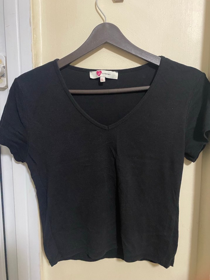 Siyah V Yaka Kadın Tişört