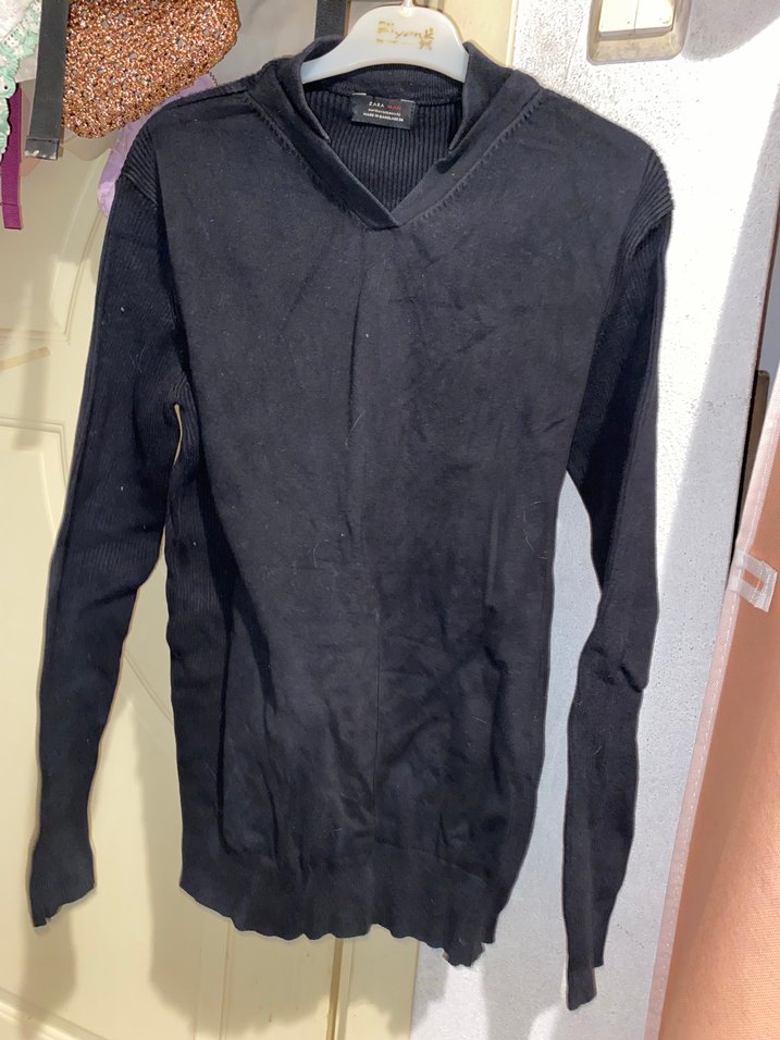 Siyah, v yaka, uzun kollu ve dar kesim kadın trikosudur. Yumuşak sentetik kumaştan üretilmiştir, günlük kullanıma uygundur.