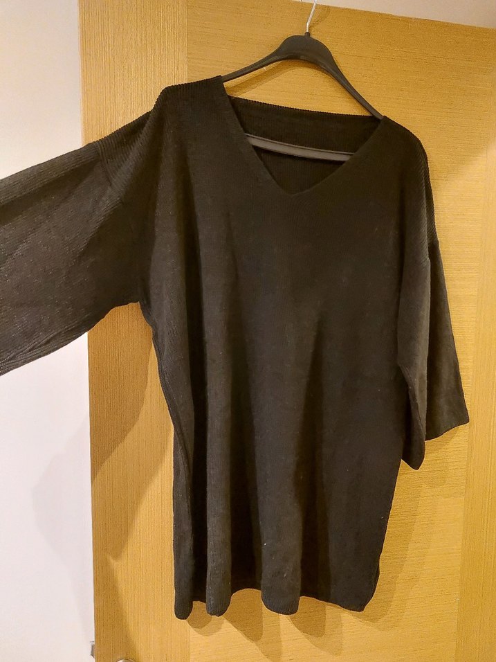 Siyah V Yaka Kadın Triko Bol kesim Elbise