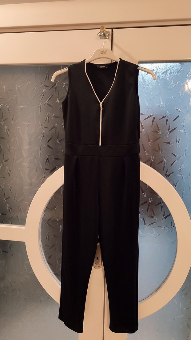 Siyah V Yaka Kadın Tulum
