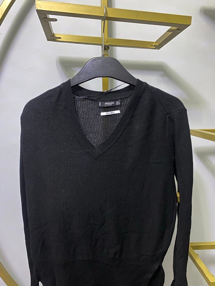 Siyah yün kazak, V yaka ve uzun kollu, regular fit ile minimalist ve zahmetsiz şıklık sunar, günlük kullanıma uygundur.