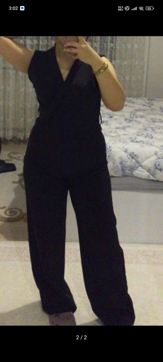 Siyah tulum, V yaka Siyah düz tulum S-M olur önünde ütü izi var ama kullanıma engel değil