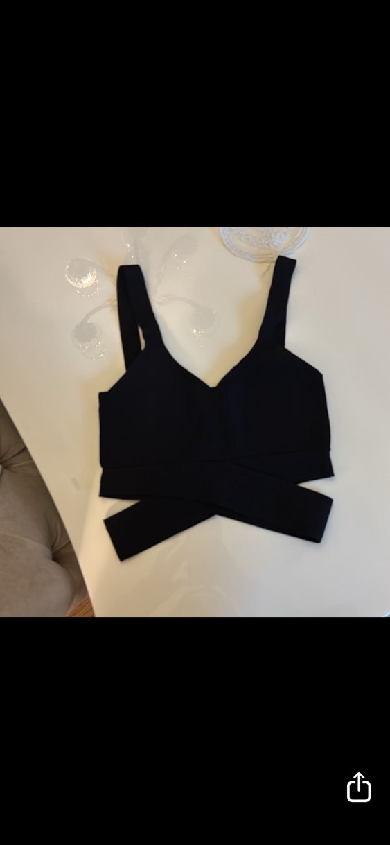Siyah, kemerli ve V yakalı mini büstiyer. Sentetik kumaştan, atletik ve sokak stili için uygun, askılı ve vücuda oturan kesim.