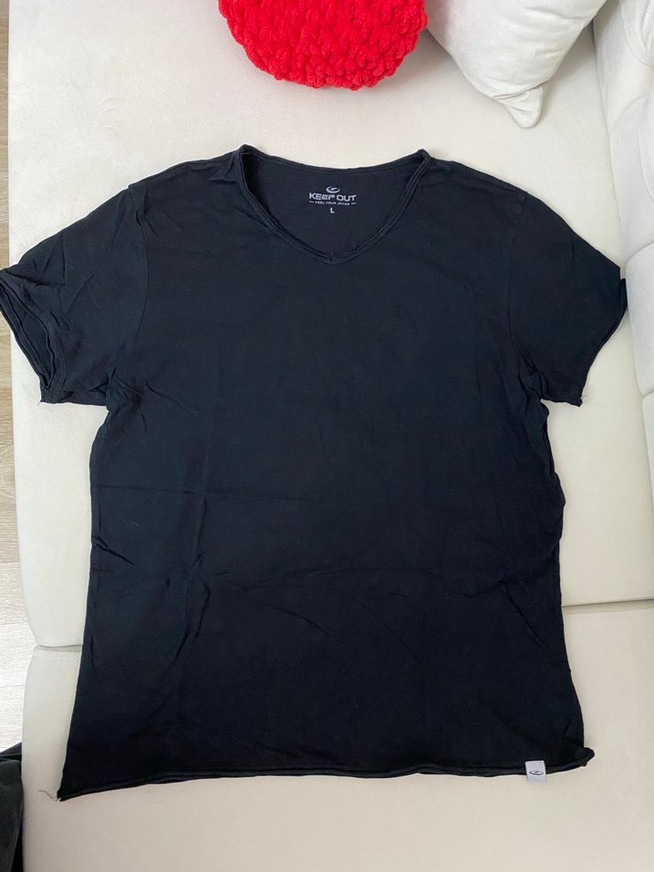 Siyah renkli, V yaka ve kısa kollu erkek tişörtü, nefes alan keten kumaştan üretilmiştir. Rahat kesimi ve normal boyu ile günlük sokak stili ve athleisure için uygundur.