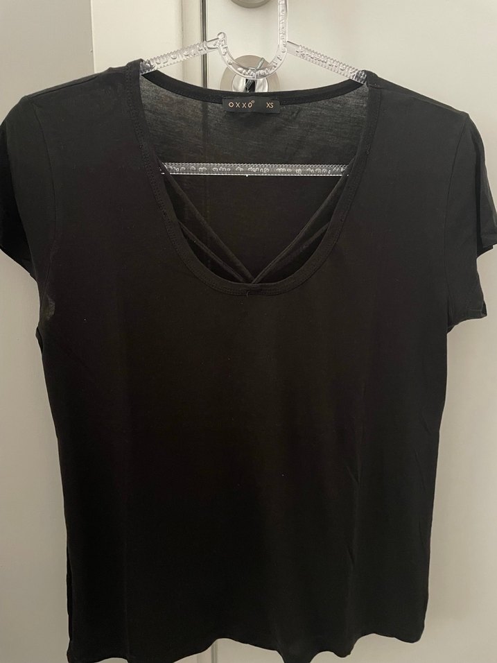Siyah yaka detaylı şık tişört, sadece 1 kez giyildi, blazer ceket içine hırka ve gömlek içine kombinlendiğinde kombine şıklık katacaktır.