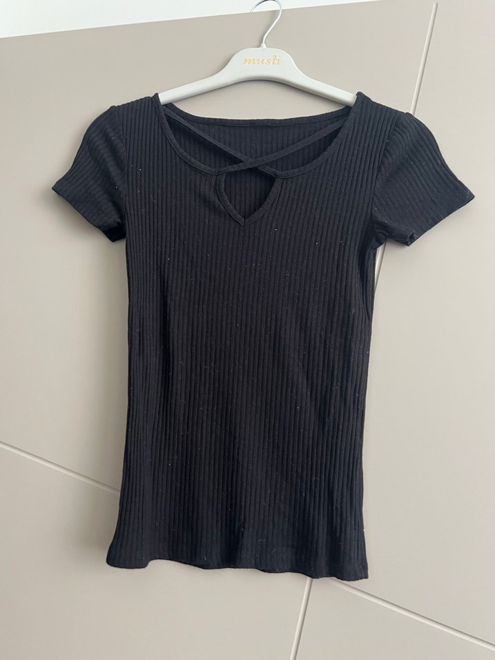 Siyah V Yaka Kısa Kollu Kadın Tişört