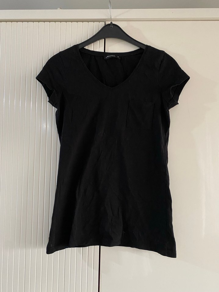 Siyah renkte, V yaka ve kısa kollu, keten kumaştan üretilmiş, vücuda oturan kesime sahip bir tişörttür. Minimalist ve gotik tarzı yansıtır, günlük kullanıma uygundur.