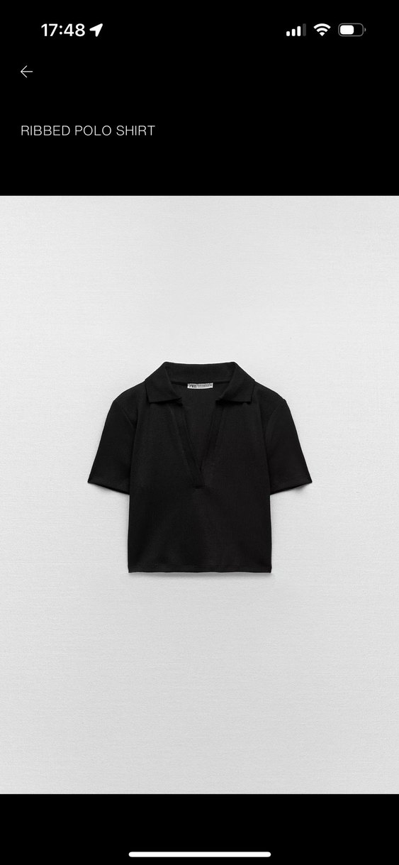 siyah, V yakalı ve kısa kollu, dar kesim polo tişört. Yumuşak sentetik kumaştan, trend sokak stili için uygundur.