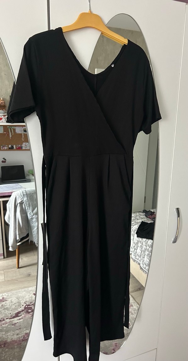 Siyah V Yaka Kısa Kollu Salaş Tulum