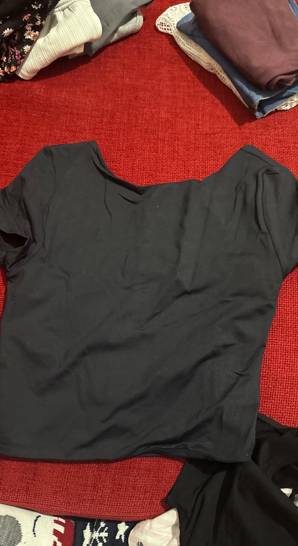 Siyah V Yaka Kısa Kollu sırtı açık Tişört