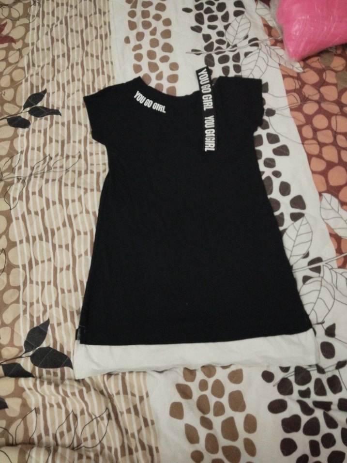 Siyah kız tişörtü, kısa kollu, V yaka ve bol kesimdir. Yakada ve omuzda "YOU GO GIRL" yazılı baskı ve şık bir yırtmaç detayı bulunur. Sentetik kumaştan üretilmiştir.