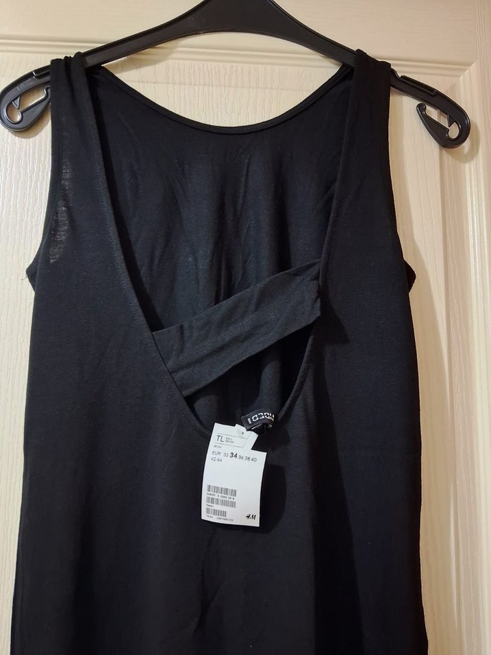 V sirt dekolteli ve kolsuz tasarıma sahip, siyah pamuklu kumaştan yapılmış oturan midi elbise. Minimalist goth tarzıyla günlük kullanıma uygun, zahmetsiz şıklık sunar. iade almiyorum.