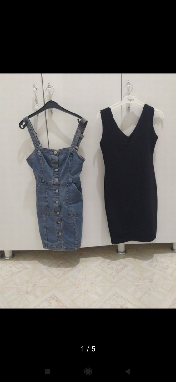 Siyah V Yaka Kolsuz Günlük Elbise ve kot elbise