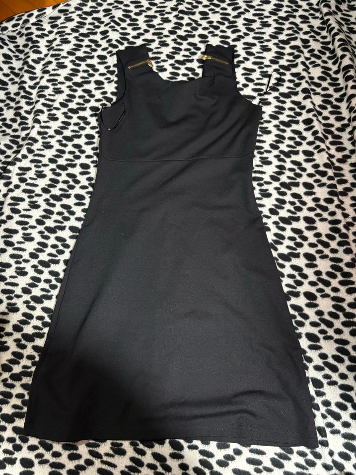 V yaka, kolsuz, siyah kalem elbise, midi boy, ince oturan kesim ve küçük kürk detaylarıyla minimalist gotik tarzı yansıtıyor.