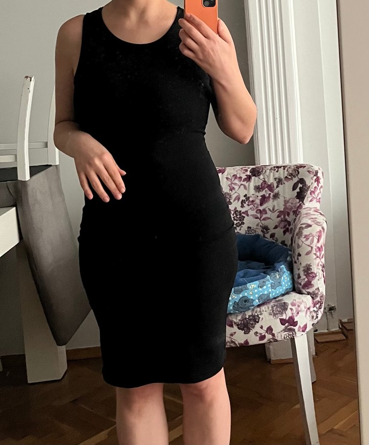Düz siyah, v yaka ve kolsuz midi kalem elbise, vücuda oturan kesimi ve yumuşak sentetik kumaşıyla dikkat çeker. Romantik akşamlar için ideal, cesur ve zahmetsiz şıklık sunar.