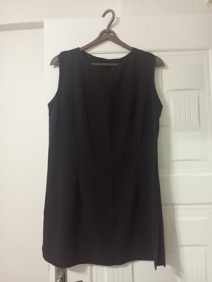 Kolsuz, V yakalı siyah midi elbise, ipeksi kumaştan ve sade tasarımıyla günlük şıklık sunar. Rahat kesimi minimalist tarzı yansıtır. Yandan yırtmaçlı serin tutar