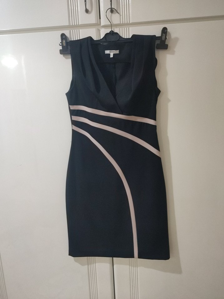 Siyah V Yaka Kolsuz Mini Elbise düğün