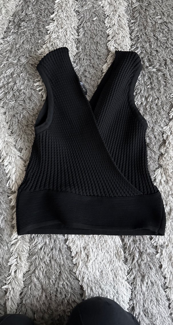 Kolsuz, V yakalı, siyah triko süveter. Yumuşak sentetik kumaştan, fit kesim ve dokulu örgü deseniyle günlük kullanıma uygun.