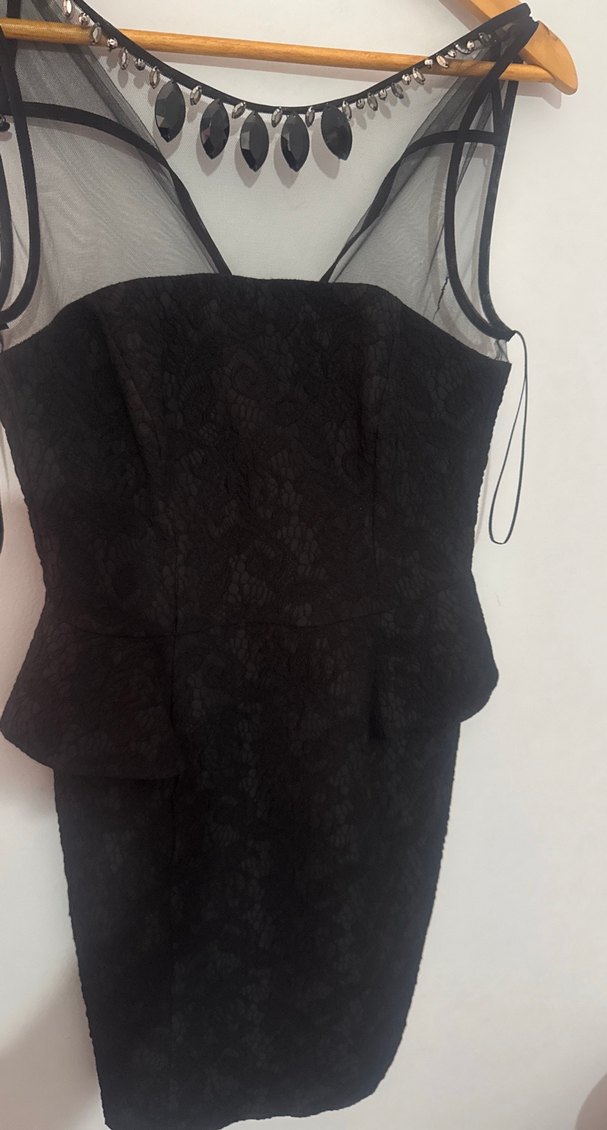 V yaka ve kolsuz, fitted kesim siyah gece elbisesi. Uzun boy ve fırfırlı detaylarla gotik parti stiline uygun.