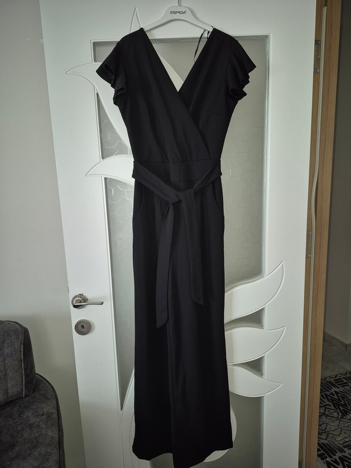 Siyah u V yaka ve drapeli detaylara sahip. Askılı kollu ve rahat kesimli sırtı fermuarlı tulum. 1 2 kez anca giyilmiştir.