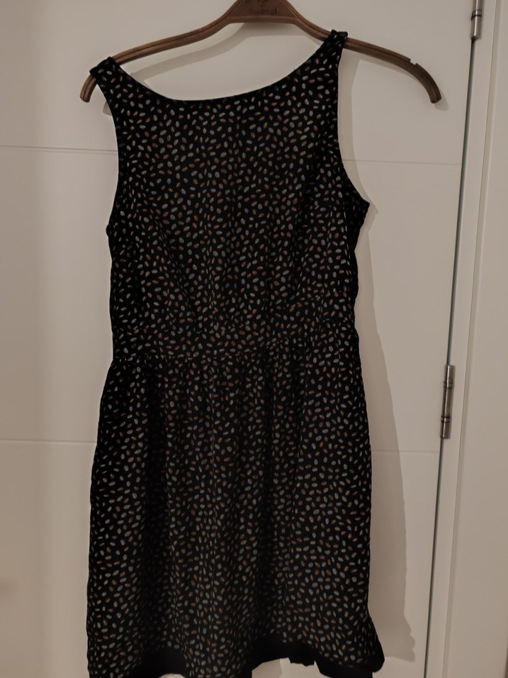 Siyah midi elbise, V yaka ve fırfır detaylı, vücuda oturan kesime sahip. Yumuşak sentetik kumaştan, minimalist gotik tarzda günlük kullanım için uygundur.