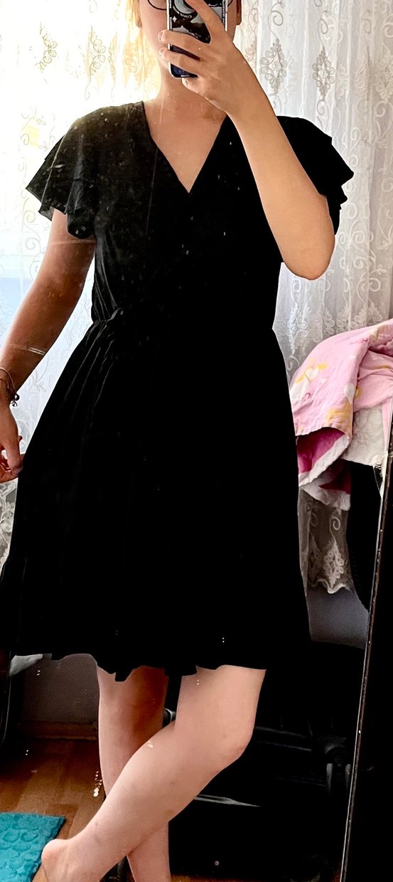 Siyah midi uzunlukta, bol kesim ve V yakalı gece elbisesi. Drapeli detaylar ve askılı kollarla romantik akşamlar için uygun.