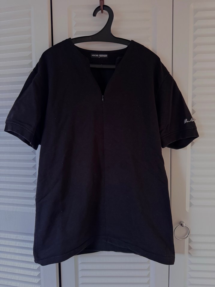 Siyah renkte, V yakalı ve kısa kollu hamile tişörtü. Rahat bir kesime sahip olup önünde fermuar bulunur, sentetik kumaştan üretilmiştir.