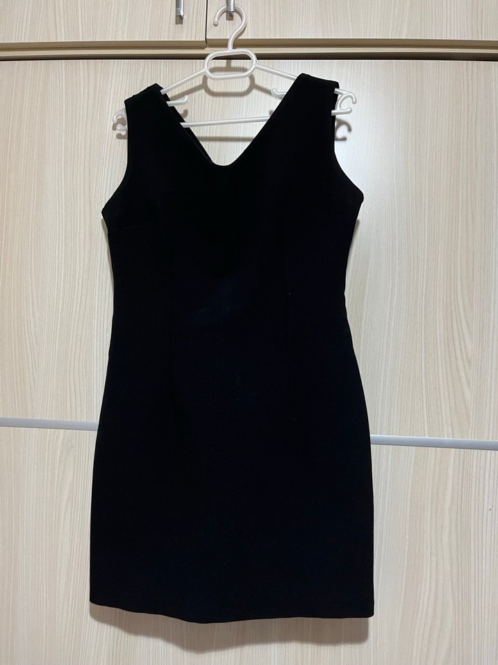 Siyah, kolsuz, V yaka ve midi uzunlukta, vücuda oturan bu elbise minimalist ve avant-garde tarzları sevenlere uygundur. 38-40 beden için uygundur.