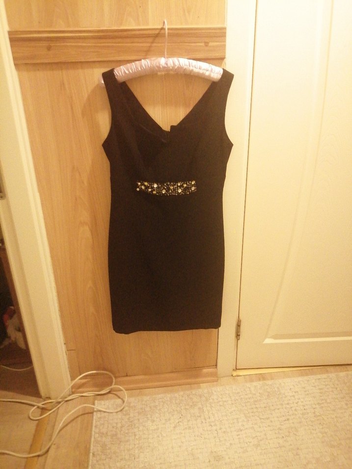 Siyah, kolsuz, V yakalı ve kemerli bu midi elbise, şık ve sade tasarımıyla romantik akşamlar için uygundur.